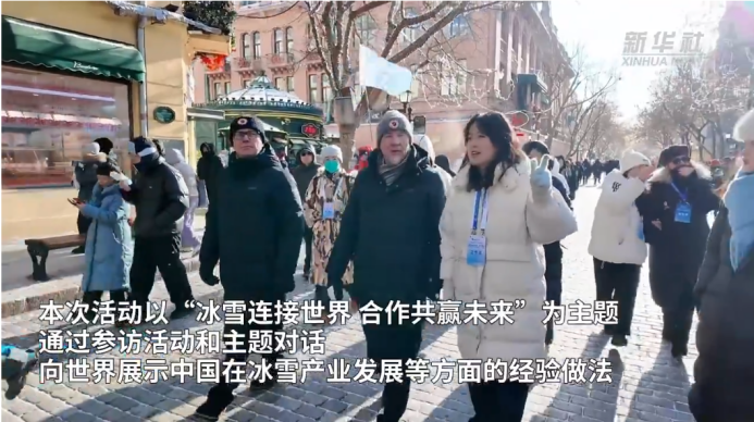冰雪为媒,文化为桥。嘉宾们漫步百年中央大街,“面包石”铺就的路面承载着历史记忆,沿街冰雪景观与欧式风情交相辉映,让这座城市的中西文化交融特质愈发鲜明。